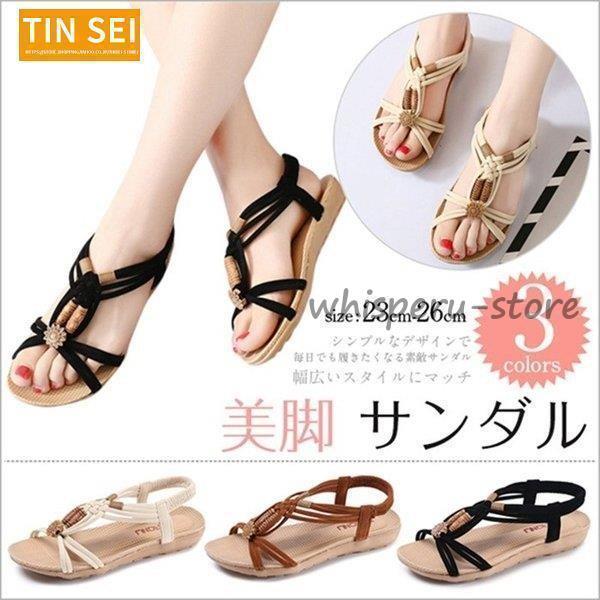 サンダル レディース 夏 ビーチサンダル 大きいサイズ 靴 アンクルストラップ フラット ローヒール ぺたんこ 履きやすい 痛くない