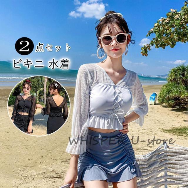 水着 レディース ビキニ 水着 体型カバー 胸パッド付き おしゃれ かわいい 海水浴 ママ水着 2点セット 可愛い フリル 小胸 20代 30代 タンキニ 水着セット