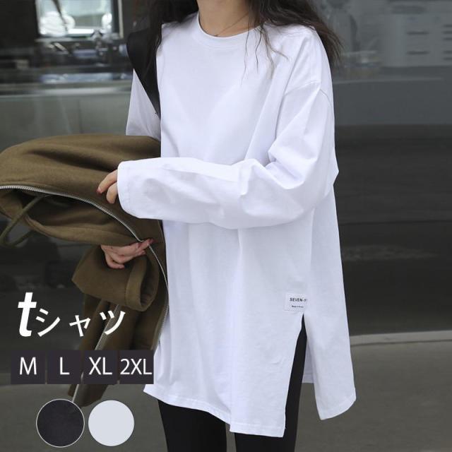 tシャツ レディース 長袖 カットソー 薄手 ロンT ロングTシャツ スウェット 大きいサイズ ビッグシルエット トレーナー 部屋着