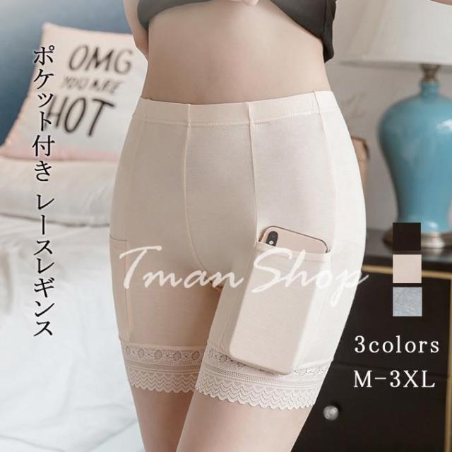 レースレギンス レギンス インナーパンツ レディース ポケット付き 見せパン 綿 ショートパンツ スパッツ 大きいサイズ 2分丈 スパッツ おしゃれ 夏新作