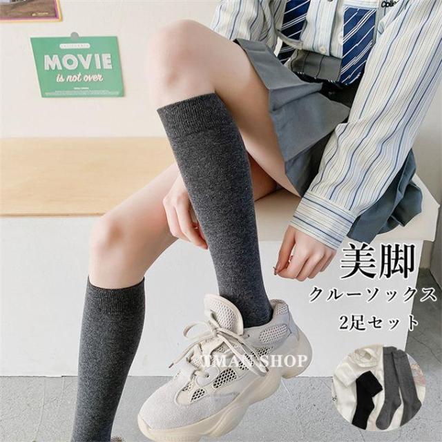2足セット クルーソックス レディース ソックス 靴下 ハイソックス 綿 無地 美脚 おしゃれ 足痩せ 通学 学院風 JK風 通勤 可愛い 春 夏 秋 冬