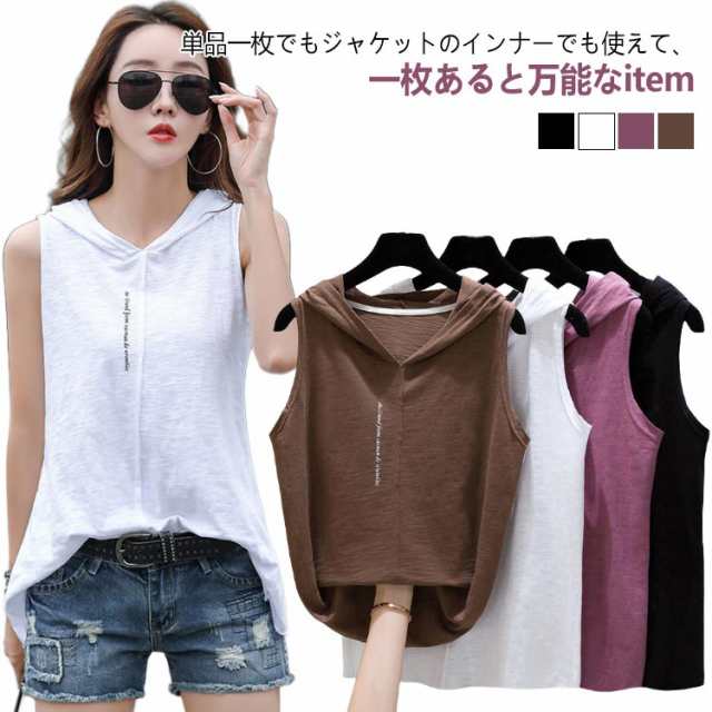 パーカー レディース 袖なし 綿 tシャツ フード付き ノースリーブ 薄手 トップス プルオーバー ノースリーブ 無地 春夏 フード付きカットソー シンプル 大きサイズ おしゃれ ゆったり