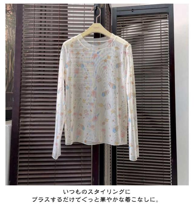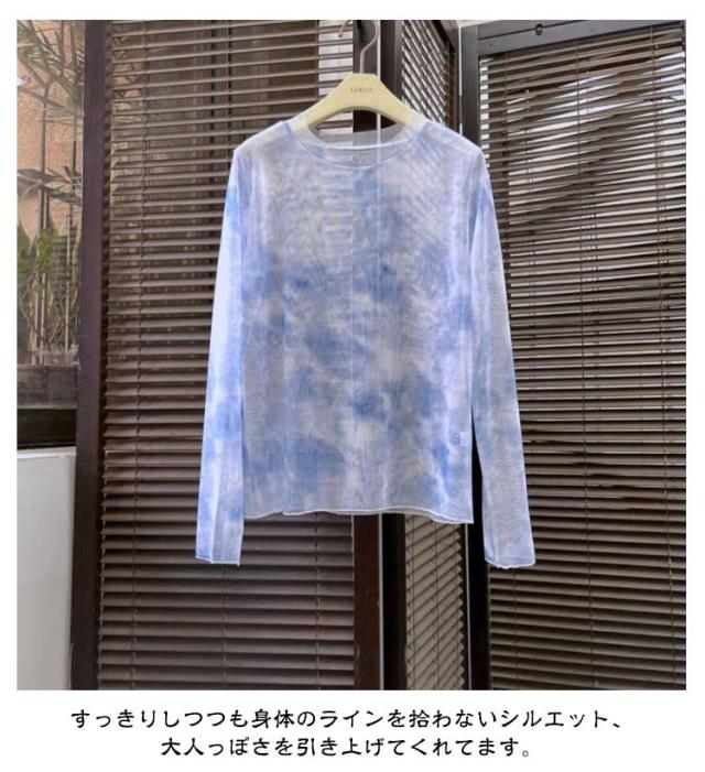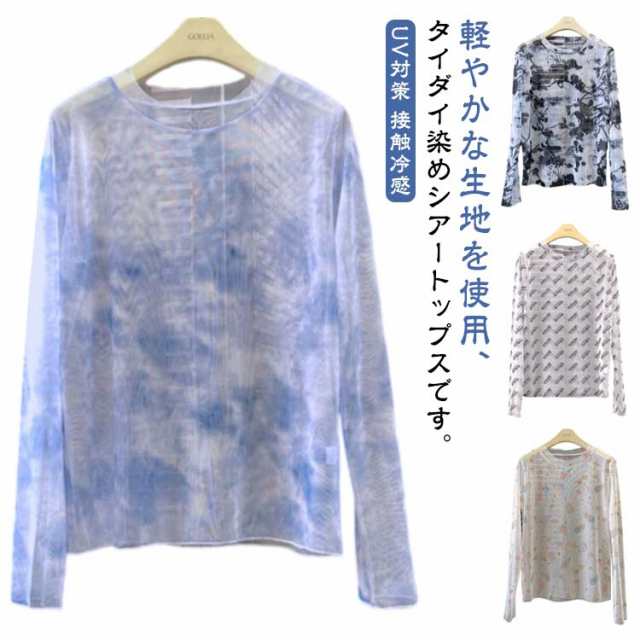 紫外線対策 プルオーバー レディース 冷房対策 タイダイ染め カットソー ダンス タイダイ染め インナー 20代 UV対策 接触冷感 シアートップス レイヤード シースルー Tシャツ ゆったり 春 夏 薄手 きれいめ 透け感 10代 長袖 30代 40代