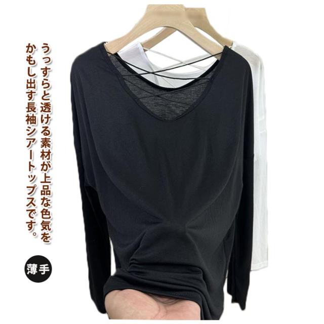 長袖 インナー シアートップス 透け感 ソフト 無地 レイヤード シアーシャツ 薄手 快適 ストレッチ 着やせ カットソー 春 レディース シアーシャツ ブラウス ダンス衣装 フェミニン 秋 重ね着 ゆったり 夏 シアー 冷房対策 トレンド シンプル