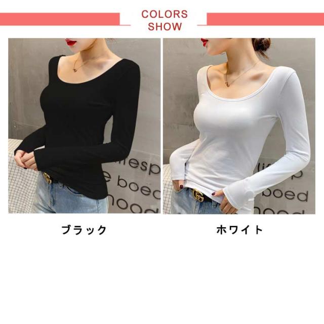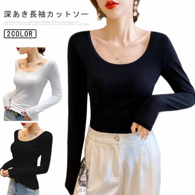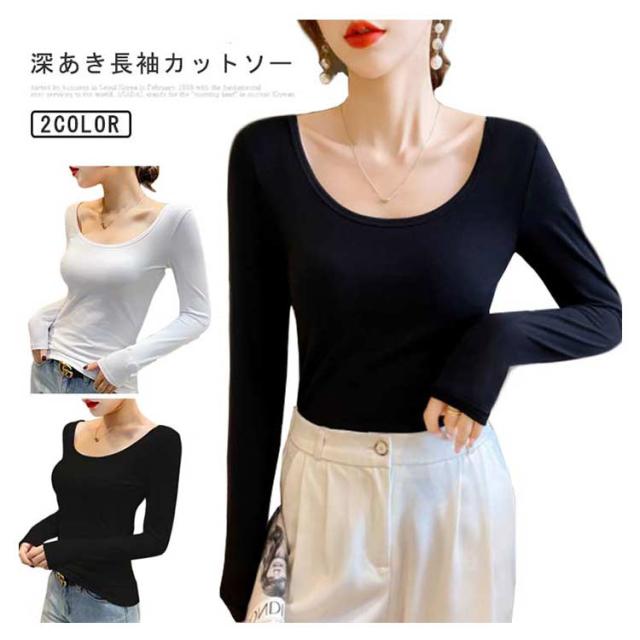 長袖 レディース 長袖 カットソー 深あき 綿 コットン Tシャツ 肌着 肩開き 肩あき 深開き 襟ぐり広め 下着 バレエネック トップス カットソー 柔らか シンプル 春