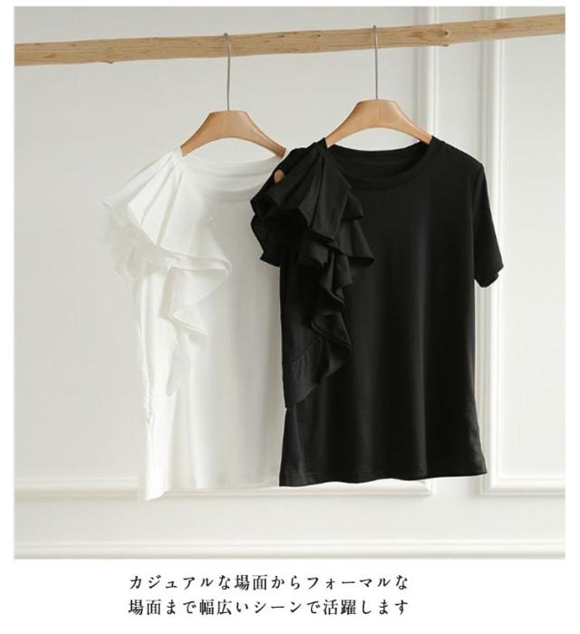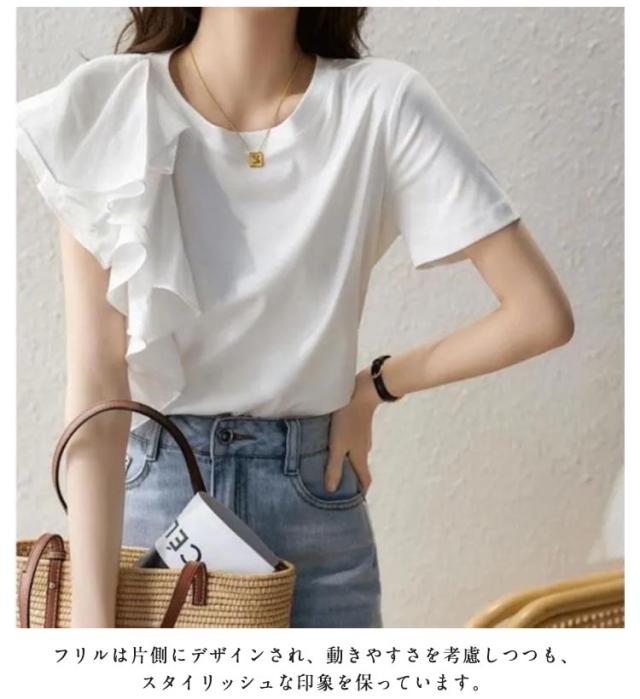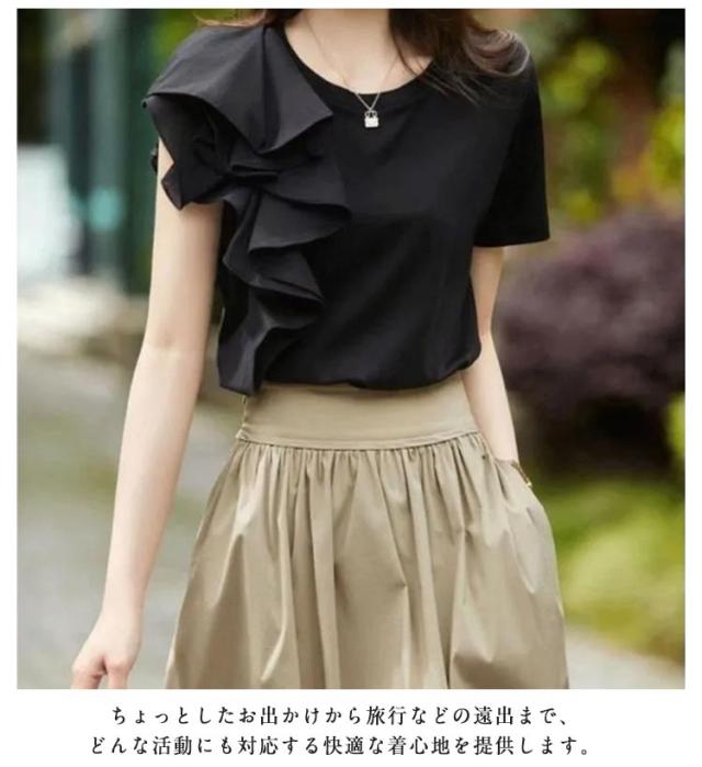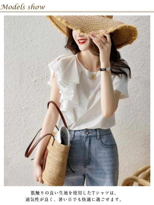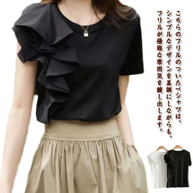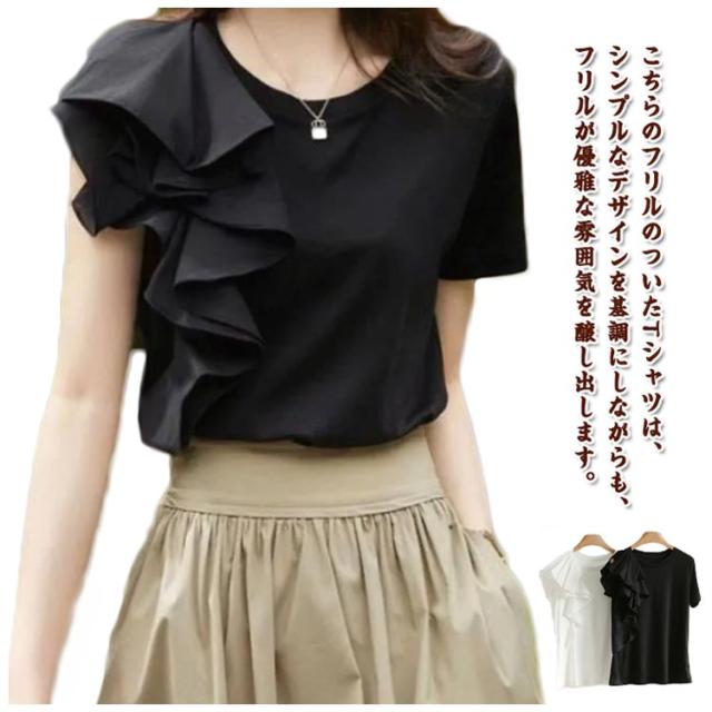 ブラウス 半袖 大人 半袖Tシャツ レディース 半袖Tシャツ プルオーバー 春夏 tシャツ トップス スリム きれいめ 無地 ゆったり カットソー フリル カジュアル韓国風 きれいめ 着痩せ 20代 30代