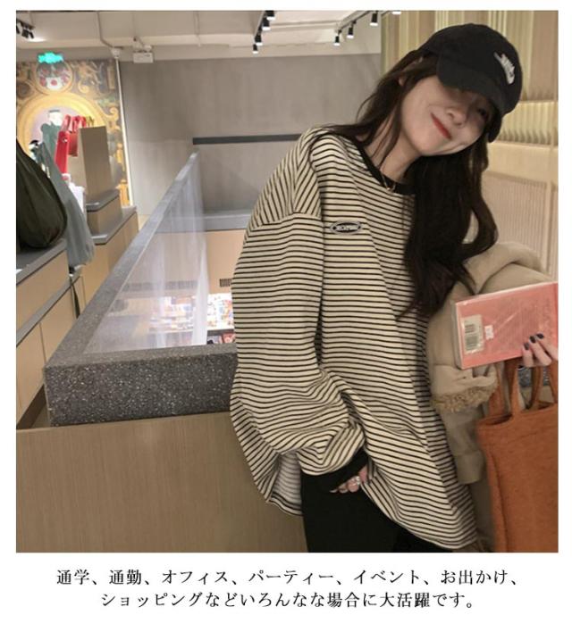 | かわいいゆるり感を溢れるtシャツで、カジュアルなデザインが女子感満々。 着まわしやすいゆるっとボーダー長袖Tシャツ。 シンプルなアイテムだからこそ、ディテールにこだわりました。 通学、通勤、オフィス、パーティー、イベント、お出かけ、ショッピングなどいろんなな場合に大活躍です。 | |