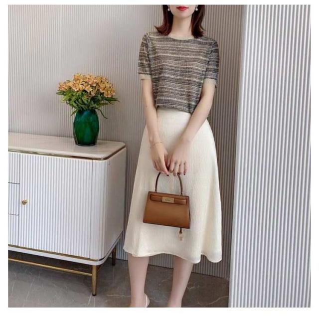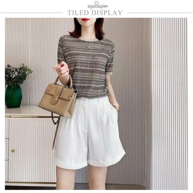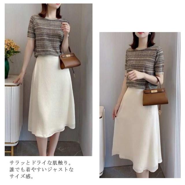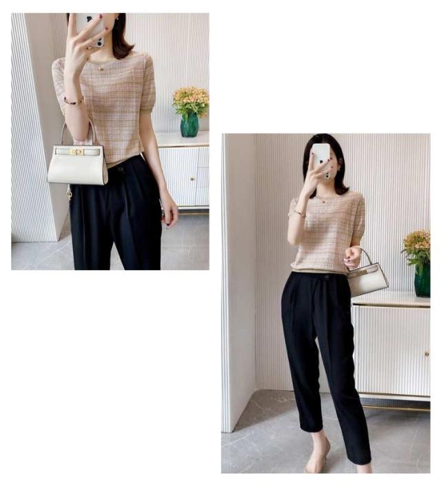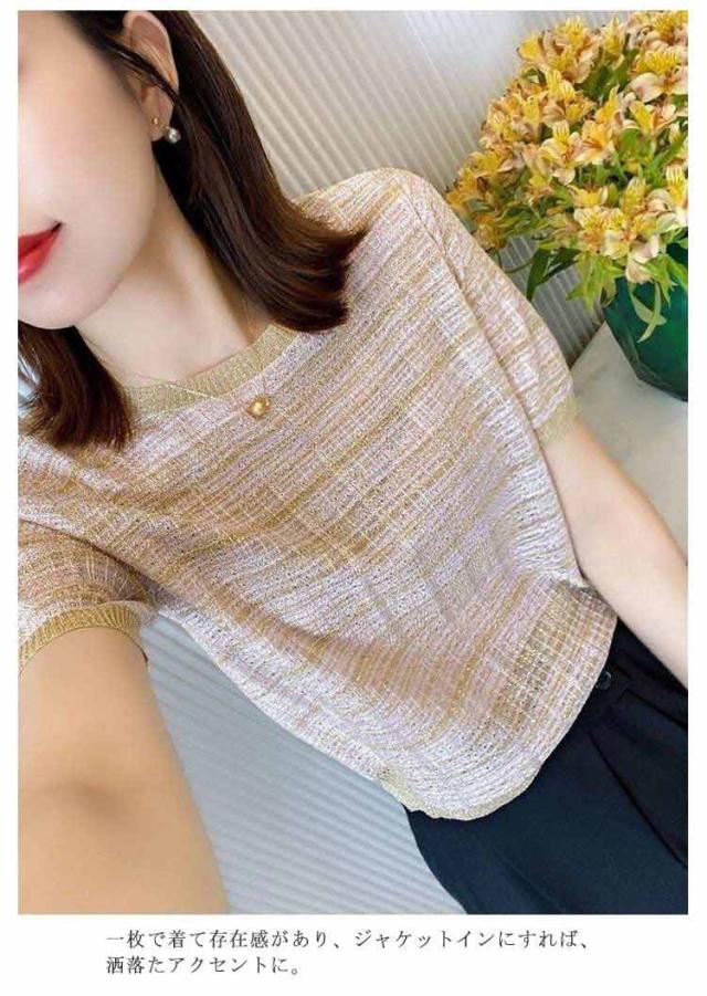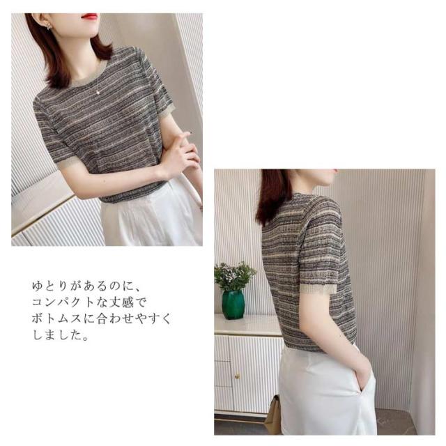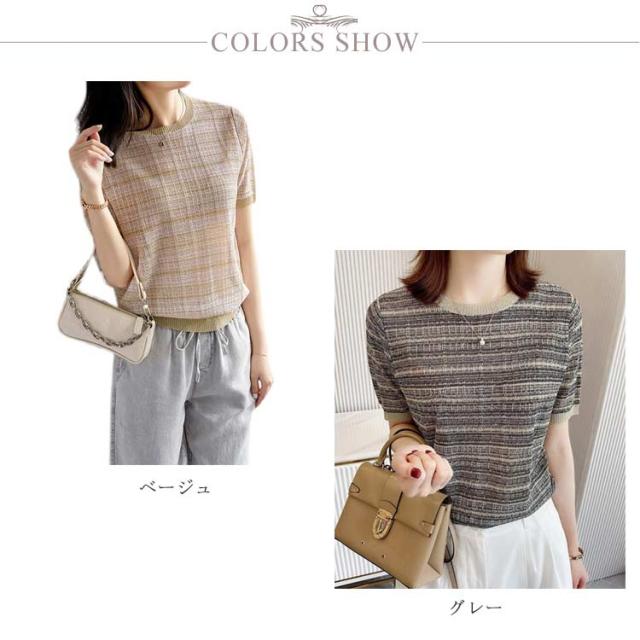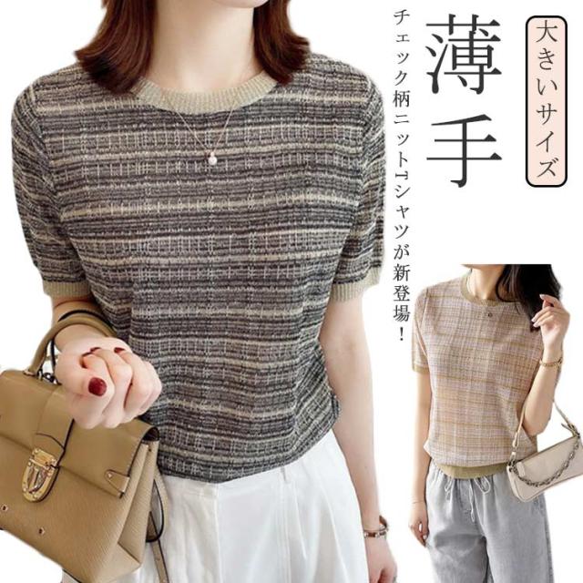 ニット ショート丈 おしゃれ ブラウス トップス レディース チェック柄 夏 春 ニット クルーネック ゆったり 半袖 大きいサイズ 薄手 Tシャツ サマーニット きれいめ 通勤 可愛い 30代 40代