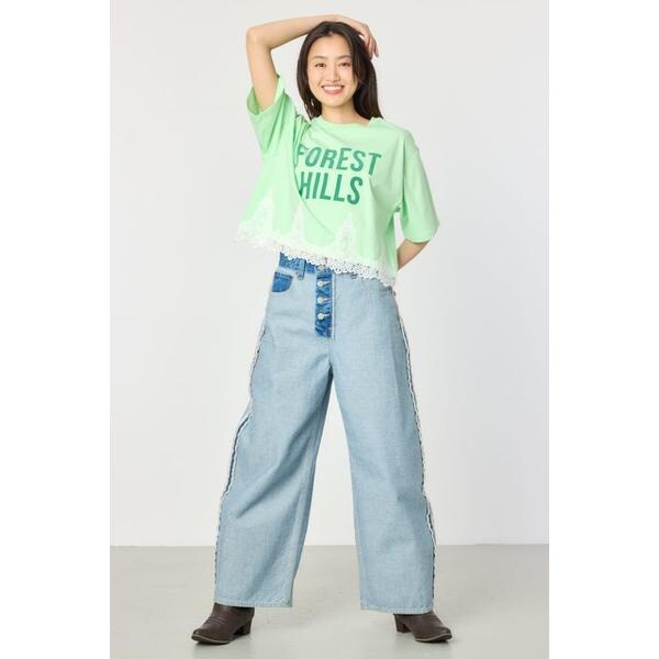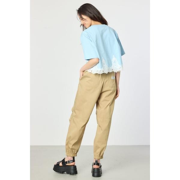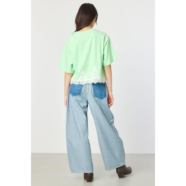 ■ポイント前年大人気だったヘムレースTシャツがアップグレードして新登場。Tシャツの着やすさがありながら、一枚で着映えする夏にうれしいアイテム。■ディティール裾のレースが甘くなりすぎない、フロントロゴとの絶妙なバランスの良い一着。■スタイリングデニムと合わせたカジュアルスタイリング、カーゴパンツなどメンズライクなボトムで合わせたコーディネートなど、幅広いスタイリングに馴染みます。■生地OE糸を使用していて、繊維の間に空間があり、適度な空気を含んでいるためシャリ感(ザラ感)があるのが特徴の生地です。■透け感:ややあり■光沢感:なし■伸縮性:あり■裏 地:なし[注意事項]※画像の商品はサンプルです。実際の商品と仕様、加工が若干異なる場合があります。※画像の商品は光の照射や角度、お使いのモニター環境により、実物と色味が異なる場合がございます。※着用、お取り扱いの際は、アテンションタグをご確認ください。