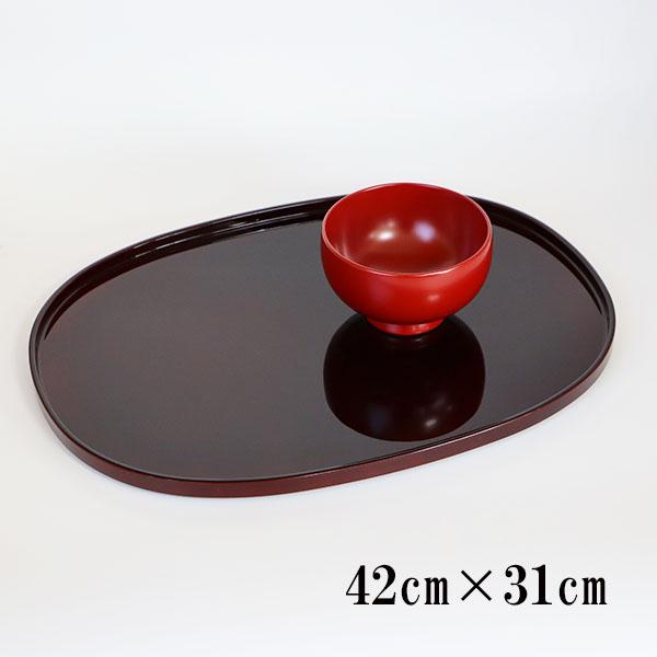 小判盆 トレー トレイ お盆 溜 42cm 日本製 お膳 会席膳 割れない 耐久 食器 越前漆器 業務用漆器