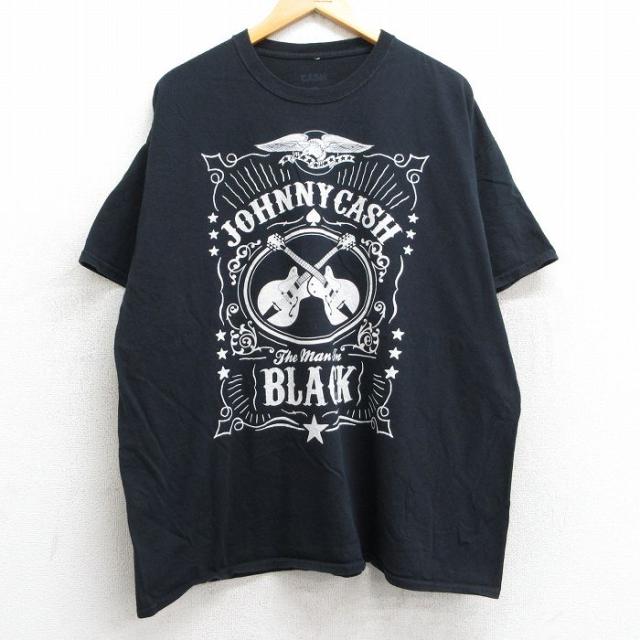 古着 半袖 ロック バンド Tシャツ メンズ ジョニーキャッシュ 大きいサイズ コットン クルーネック 黒 ブラック XLサイズ 中古 中古 古着
