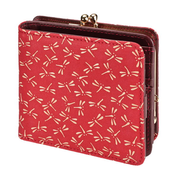 甲州印伝 印傳屋 上原勇七 INDEN 財布 二つ折り がまぐち 印傳財布 1608 とんぼ 赤地×白漆 鹿革 本革 レザー 和柄 ブランド 冬ギフト バレンタイン 贈り物 YM01
