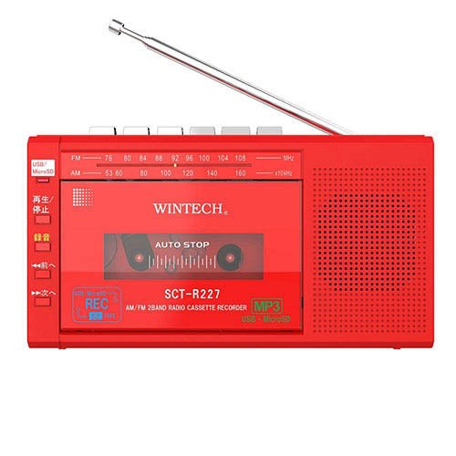 【WINTECH MicroSD/USB録音対応モノラルラジカセ デジタル録音対応 レッド SCT-R227RZの商品詳細】