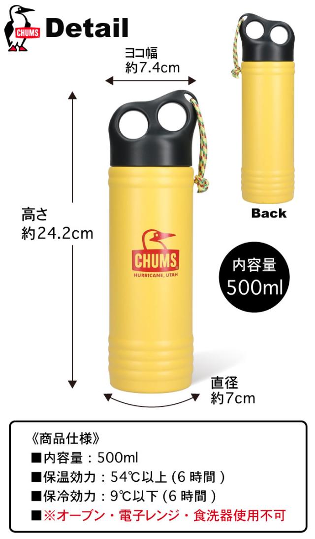 CHUMS チャムス キャンパーウェイブボトル 500ml 保温 保冷 水筒 タンブラー マグボトル アウトドア キャンプ スポーツ 遠足 釣り 登山 オフィス CH62-2128