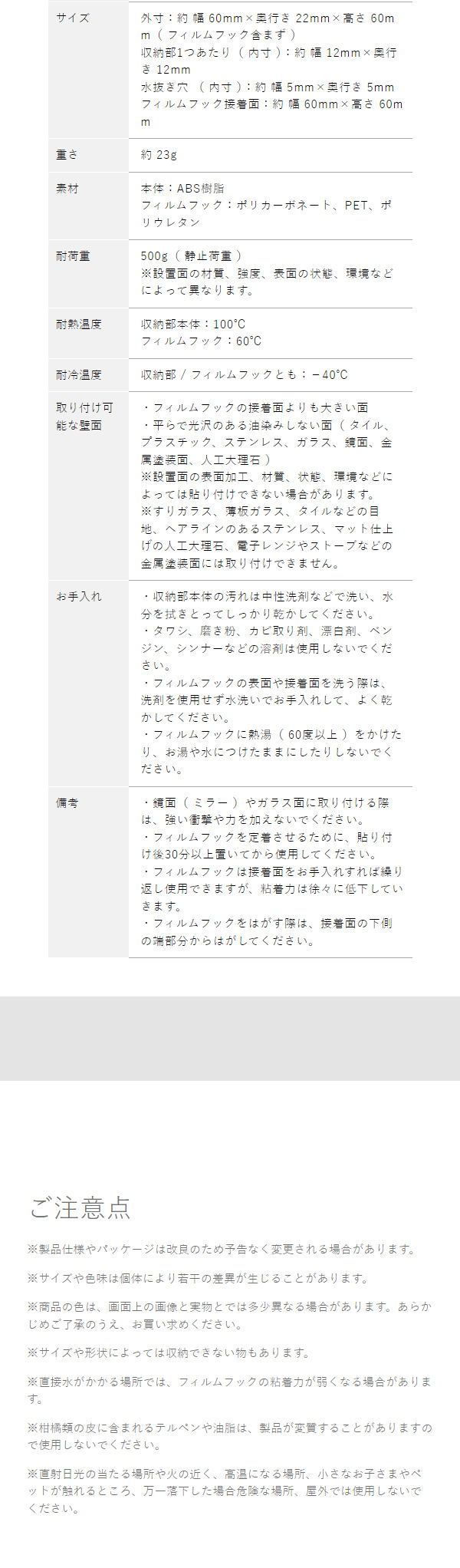 歯間ブラシやデンタルフロスなどのオーラルケア用品を収納できるフィルムフックホルダー。浮かせる収納で洗面台のお掃除も簡単、底面には水抜き穴があり乾きやすく衛生的に収納できます。