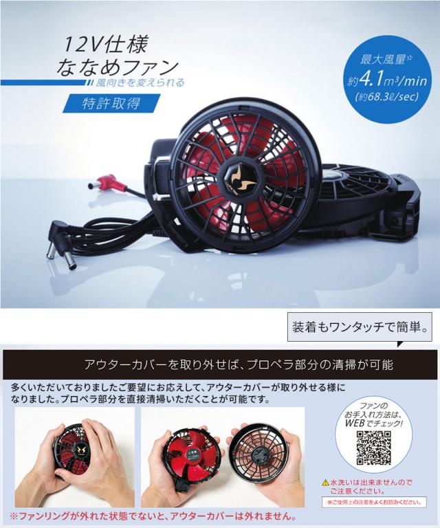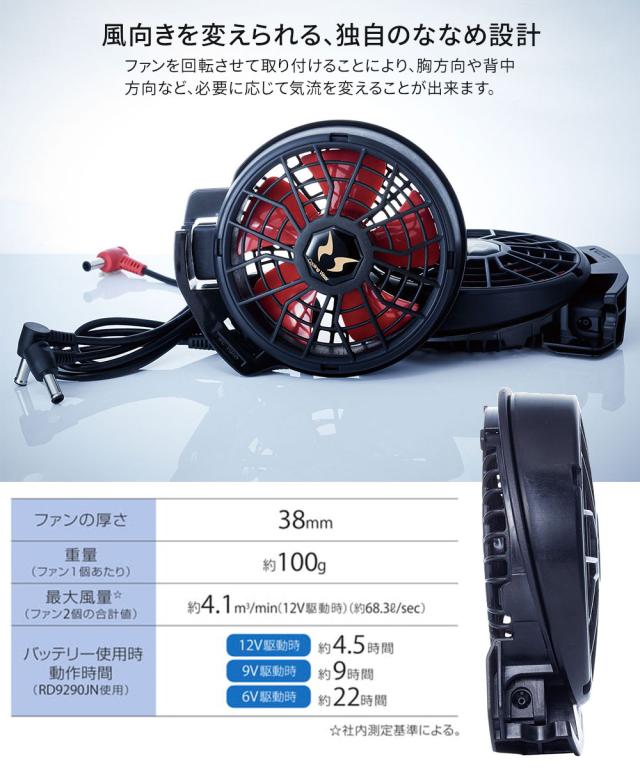 空調風神服 EFウェア 12V仕様 ハイパワーファンセット(ななめタイプ)ファン 2個 大風量 特許取得 ファンケーブル プロペラ清掃可能 ワンタッチ簡単装着 サンエス 2025 正規品 アタックベース 熱中症対策 RD9210HN