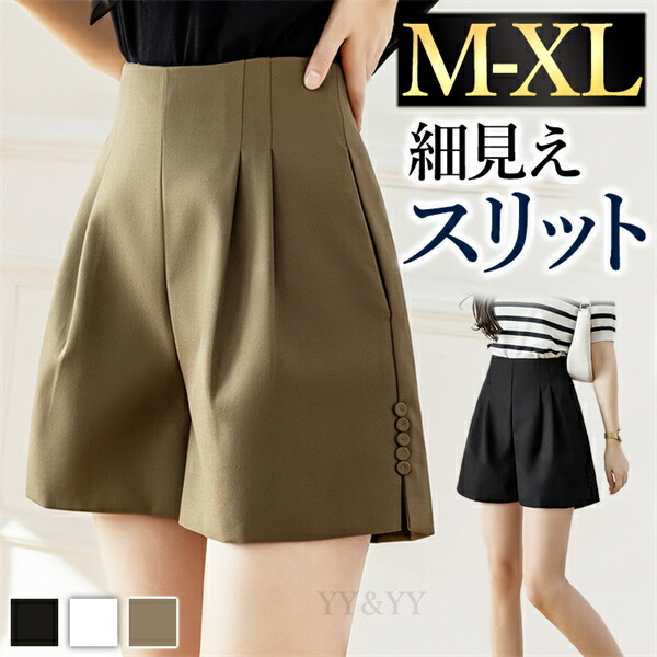 ショートパンツ パンツ 短パン ズボン ショートズボン スリット 切れ込み レディース ボトムス ボトム 短め丈 シンプル デイリー 春 夏 秋 大人 M L XL 大きいサイズ ゆったり 体形カバー お洒落 美脚 脚長効果 ハイウエスト 上質素材