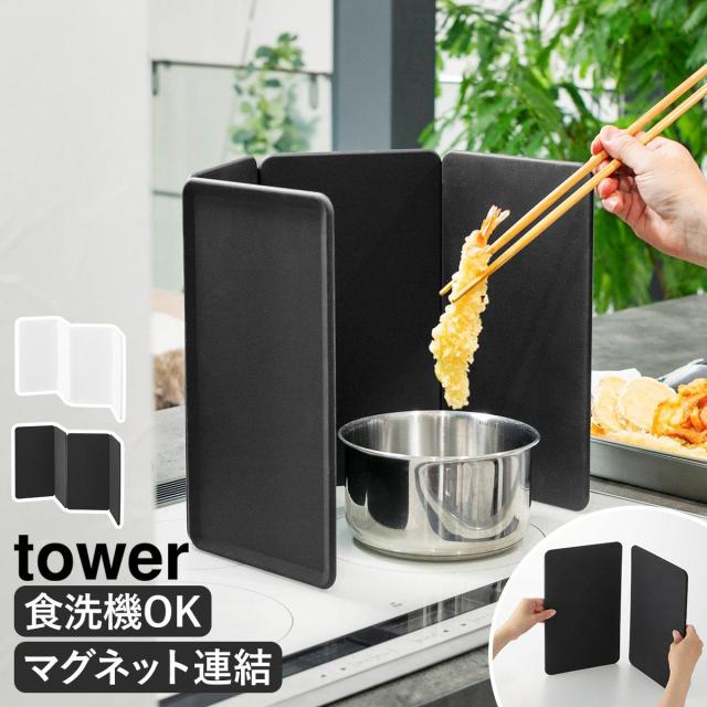 [ マグネットレンジガード タワー 4枚パネル ]山崎実業 tower レンジガード 油はね防止 IH用 4面 マグネット 磁石 食洗機 油はねガード 油よけ 油跳ね防止 揚げ物 コンパクト おしゃれ yamazaki 公式 ブラック ホワイト 1456 1457