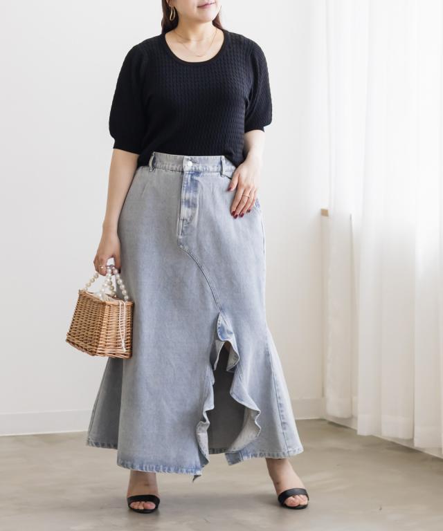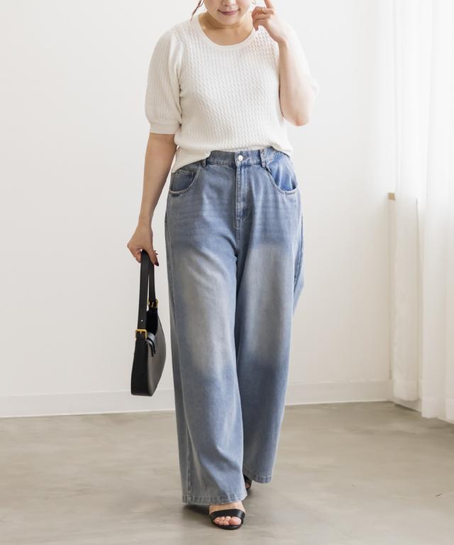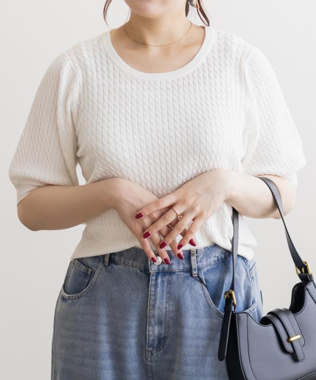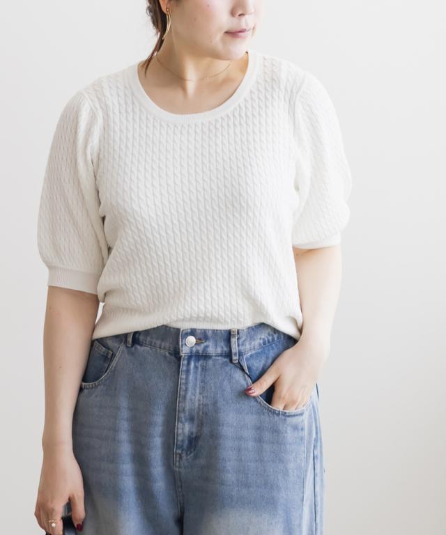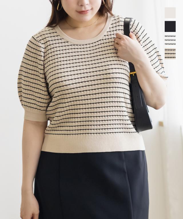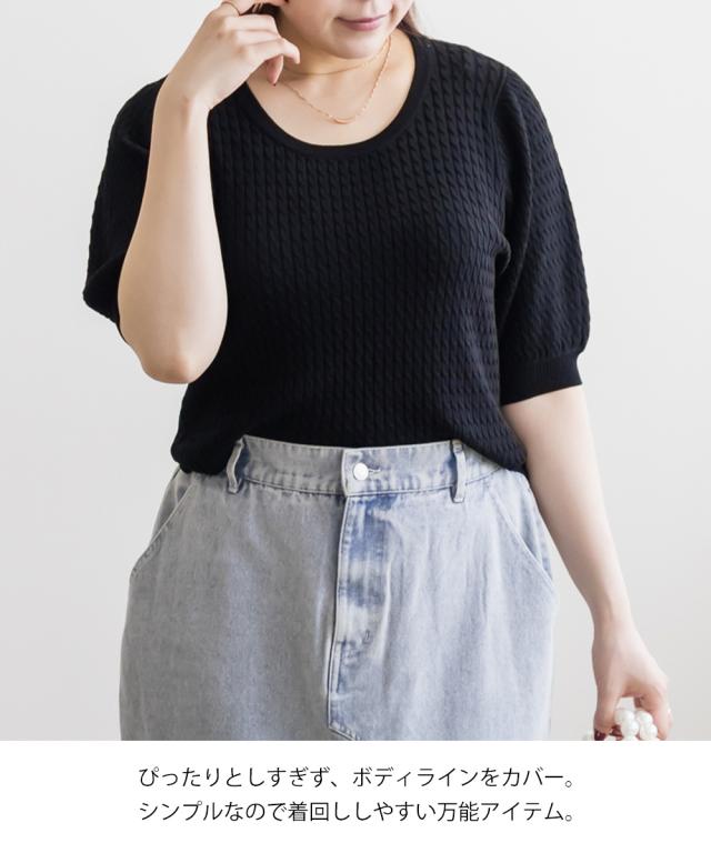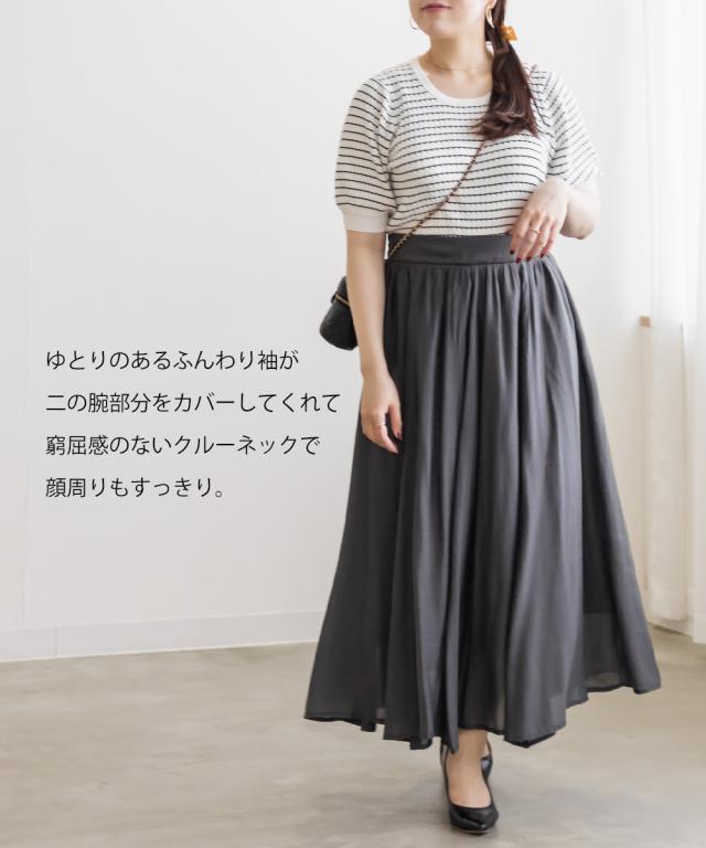 大きいサイズ/レディース/LL/3L/4L/CLETTEオリジナル★クルーネックパフスリーブニット