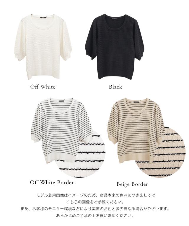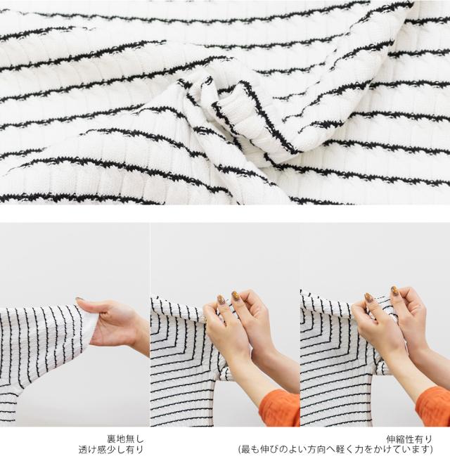 裏地無し、透け感少し有り、伸縮性有り 1オフホワイト,2ブラック,3オフホワイトボーダー,4ベージュボーダー