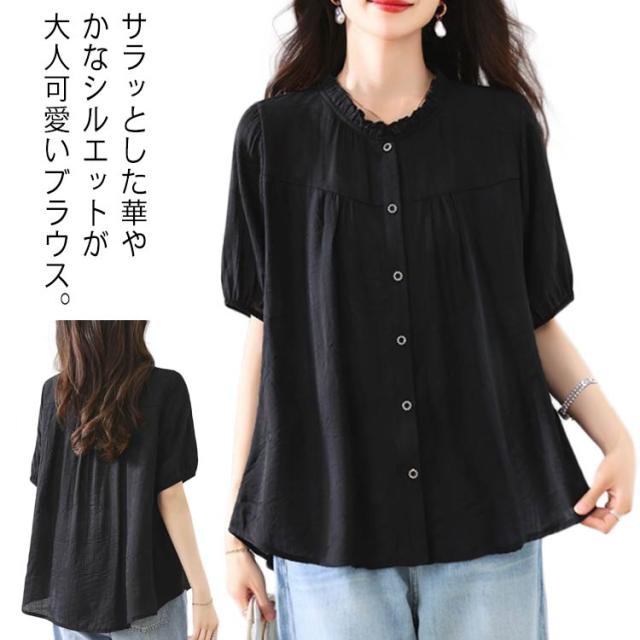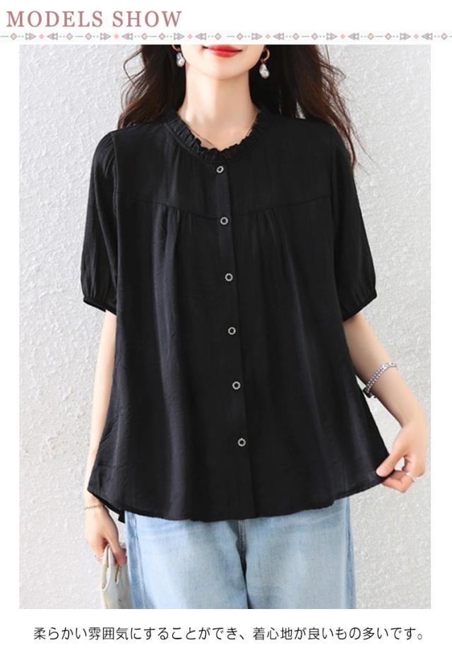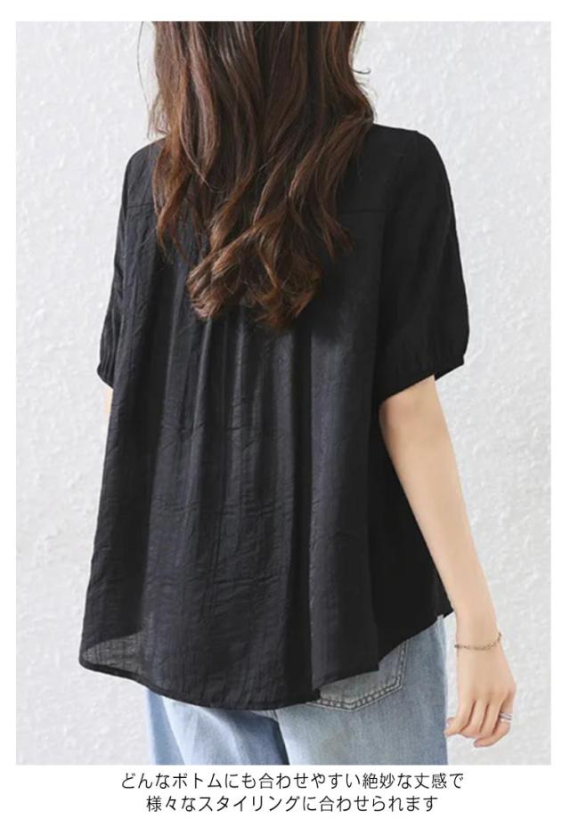 Tシャツ 体型カバー トップス ナチュラル 二の腕カバー レディース ティーシャツ チュニック 半袖 おしゃれ 大きいサイズ 無地 春 秋 半袖ブラウス カジュアル シャツ 通勤 大人可愛い ゆったり 前開き 送料無料