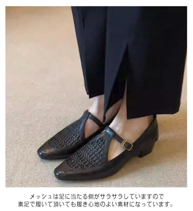 メッシュシューズ ローヒール ストラップ パンプス 痛くない ぺたんこ ローファー 脱げにくい 歩きやすい シンプル パンプス フラットシューズ レディース 軽量 軽い ストラップパンプス 履きやすい 脱げない 送料無料