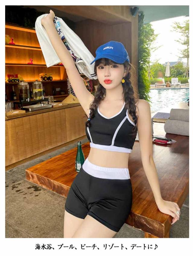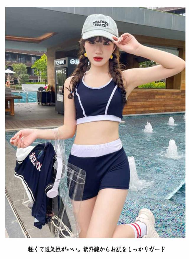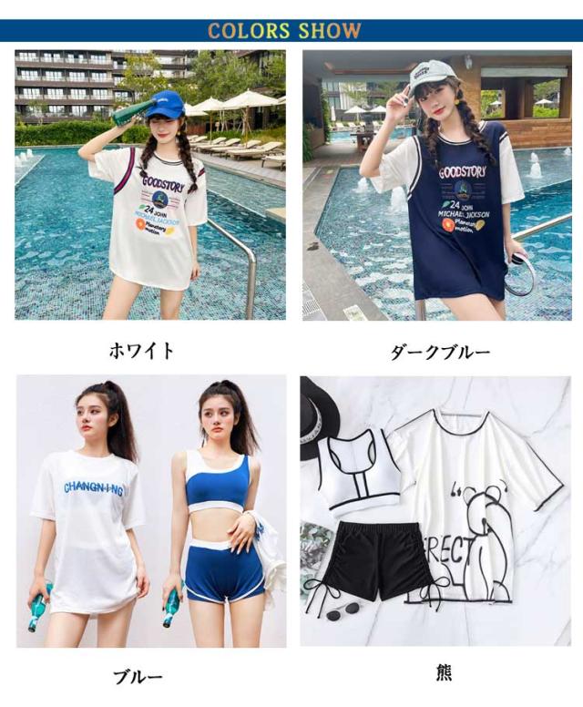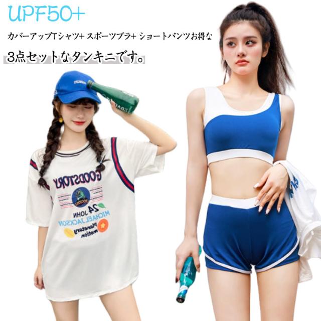 レディース 水着 半袖ラッシュガード 3点セット スポーティー水着 ショートパンツ フィットネス 体型カバー 中学生水着 タンキニ セパレート 可愛い 大きいサイズ ママ 水着 韓国 プール 女の子 10代 20代 30代