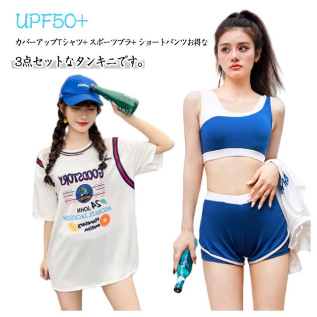 | カバーアップTシャツ+ スポーツブラ+ ショートパンツお得な3点セットなタンキニです。 泳ぐ、くつろぐ、お散歩など、海辺や水辺での様々な着こなしを楽しめるセットです。 派手になりすぎず、シンプル且つワンポイント、カラーで大人可愛いを演出するデザイン! また、気になる体型もさりげなくカバーすることができます。 軽くて通気性がいい。紫外線からお肌をしっかりガードUPF50+。 海水浴、プール、ビーチ、リゾート、デートに♪ | |