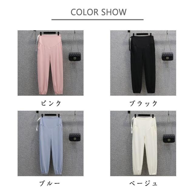 接触冷感 マタニティパンツ ジョガーパンツ ワイドパンツ 薄手 夏 涼しい 通気 速乾 夏用 パンツ アジャスター 無地 パジャマ 部屋着 ルームパンツ ズボン 春 夏 秋 用 産前 産後 妊婦服 ルームウェア 臨月 ゆったり 締め付けない ポケット