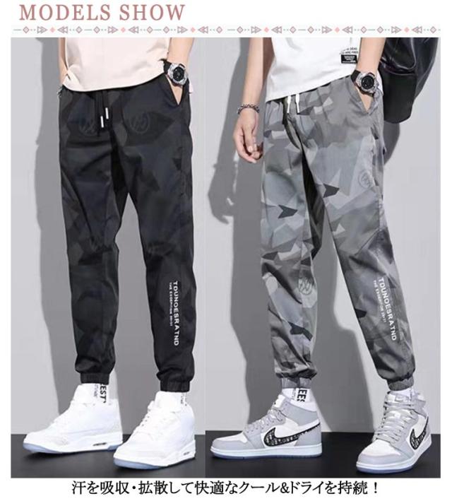 ロングパンツ 長ズボン メンズ 接触冷感 作業ズボン カーゴパンツ スポーツウェア 2枚 速乾 カジュアル ミリタリー ボトムス 冷感パンツ 涼感 スポーツ 迷彩柄 通気 ミリタリー カジュアル アイスシルク ストリート系 ジョガーパンツ