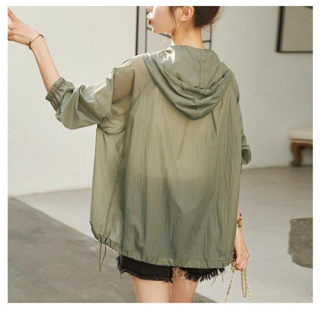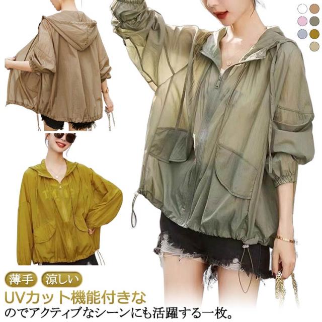 UVカット パーカー シアー 透け感 トップス レディース シアーブルゾン シアーパーカー UVパーカー シアートップス 長袖 涼しい 軽い 薄手 フード付き 焼け止めパーカー 夏 羽織り 紫外線対策 日焼け止め シースルー