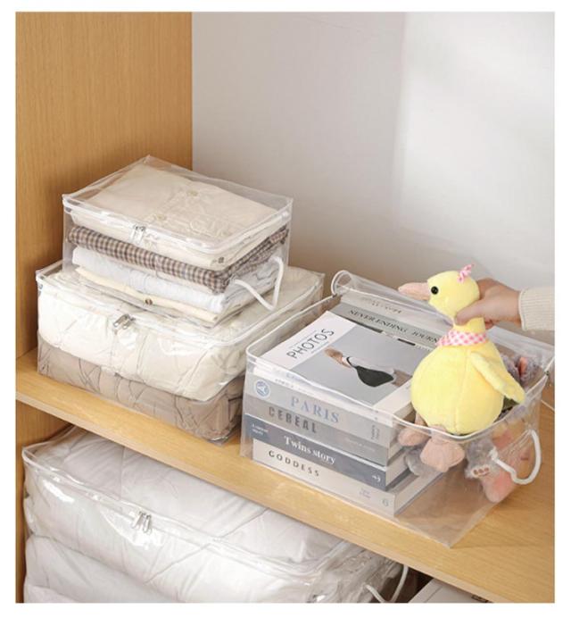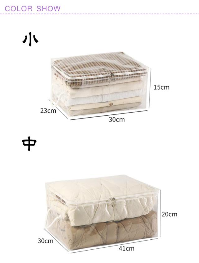| クリアタイプ!羽毛布団をコンパクトに収納出来る布団袋セット。 外から中の物が見え何が入っているか一目瞭然! 大切な衣類を湿気やホコリから守る。 | |