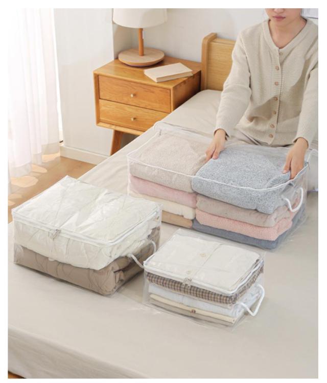送料無料 布団収納袋 透明 持ち手付き 衣類収納ケース クリア ぬいぐるみ 収納 布団収納 布団収納ケース 収納ケース 衣類収納 押入れ収納 おしゃれ 大容量 シーズンオフ布団 収納袋 引越しバッグ クローゼット収納 軽量 コンパクト 折りたたみ