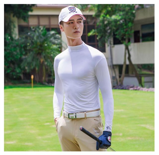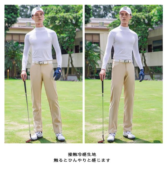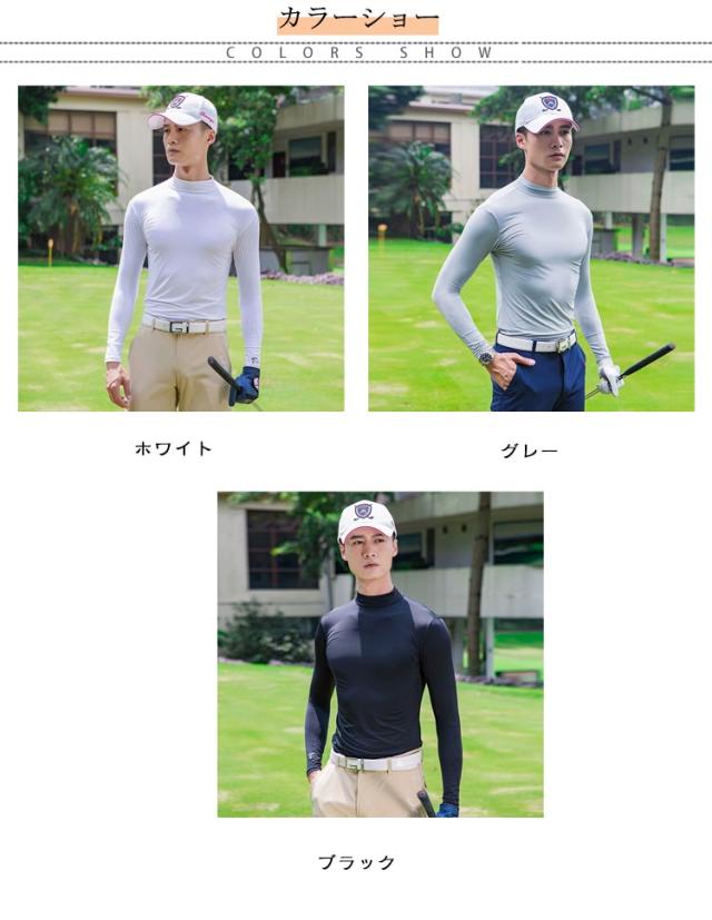 UPF50+ UVカット インナーシャツ ゴルフウェア メンズ 長袖 ハイネック ひんやり 接触冷感 涼しい ゴルフシャツ ラッシュガード インナー 大きいサイズ 吸汗速乾 通気 ゴルフ テニス ランニング 運動 日よけ 紫外線対策 日焼け防止 ストレッチ 伸縮性 トレーニングウェア
