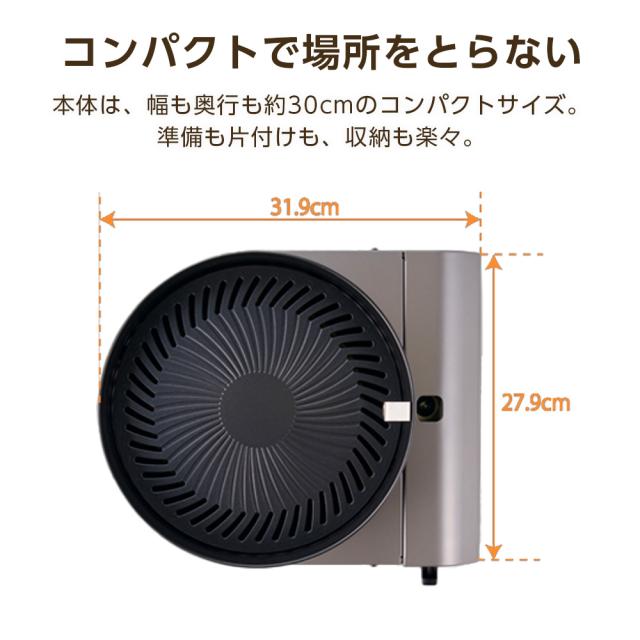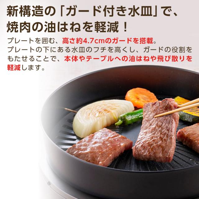 新構造の「ガード付き水皿」で、焼肉の油はねを軽減!直径約23cmのプレートを囲む、高さ約4.7cmのガードを搭載。