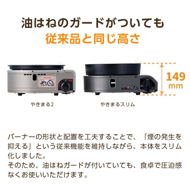 イワタニ スモークレス焼肉グリル やきまるスリム(替えプレートつき) CB-SLG-3 | カセットコンロ 焼肉コンロ 卓上コンロ 油ハネガード 鉄板 Iwatani イワタニ 日本製 煙 少ない 薄型 お手入れ簡単