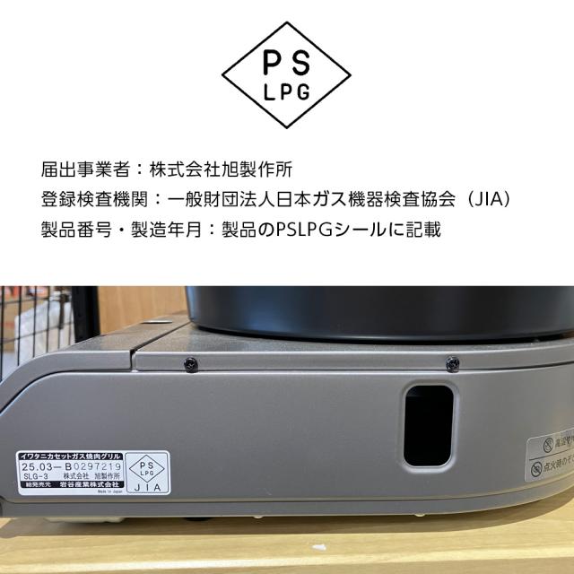 安心のPSLPGマーク取得製品本体に貼付されたシールに届出事業者名・登録検査機関名・製品番号および製造年月が記載されています。商品画像にてご確認ください。