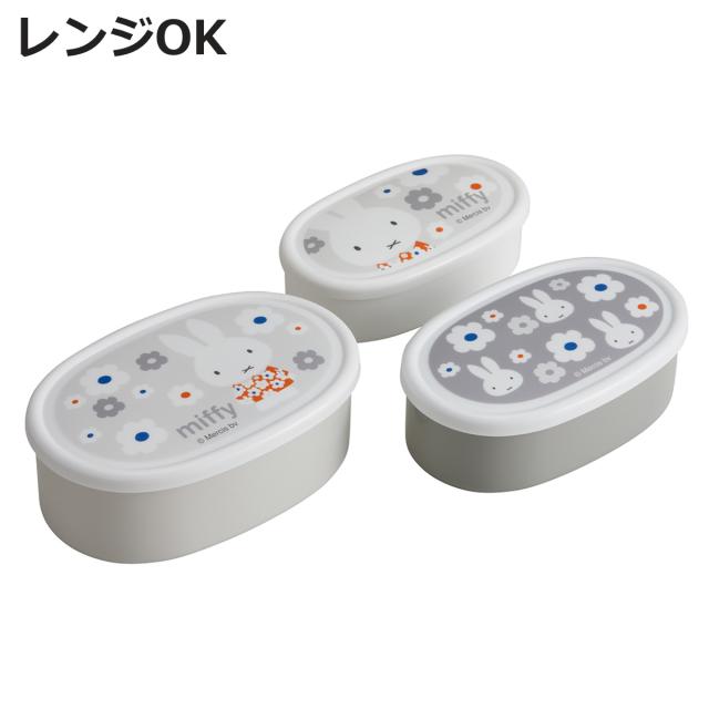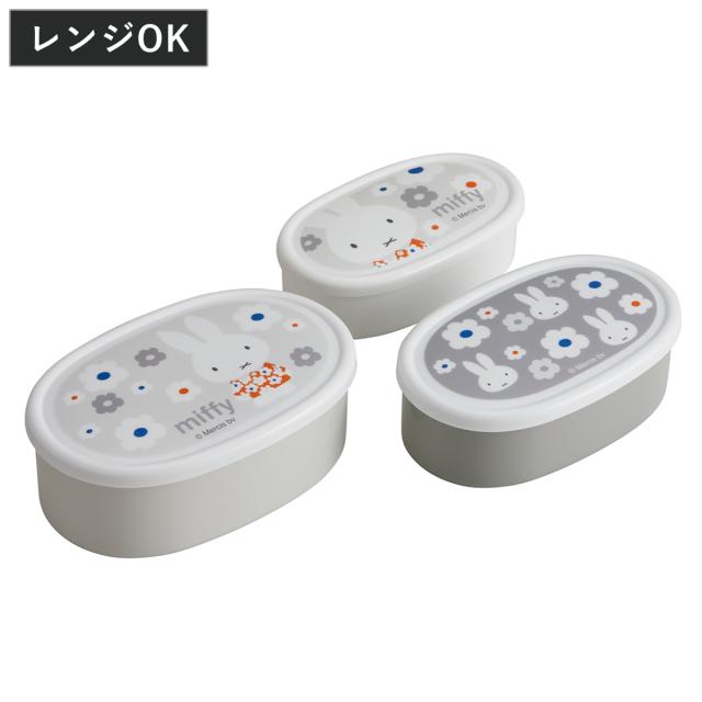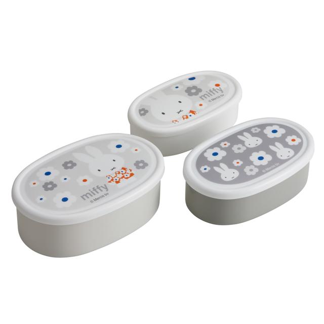 弁当箱 抗菌シール容器3個セット ミッフィーモノトーン ( ミッフィー レンジ対応 保存容器 シール容器 ランチボックス 抗菌 日本製 レンジOK 弁当 お弁当 抗菌加工 果物ケース デザートケース フルーツケース )