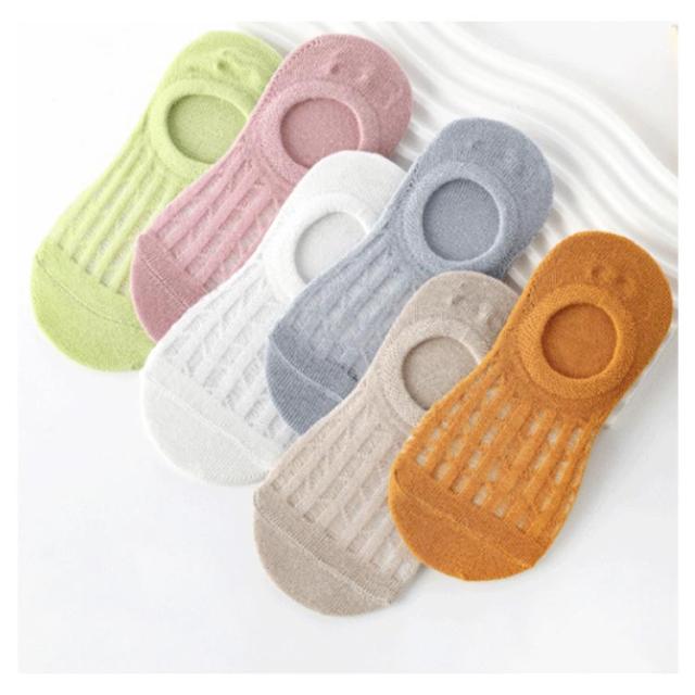 | *春から夏まで履ける透かし編みの可愛いスニカーカーソックス5足セットです。 *夏に履きやすい薄手で、透かし編みなので通気性が良いです。 *淡いカラーがとても可愛いです。 *滑り止めは14-16cm、16-18cm、18-21cmのみ付いています。 | |