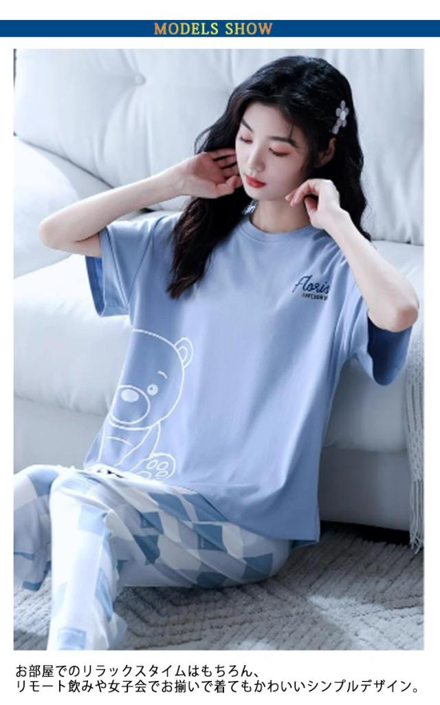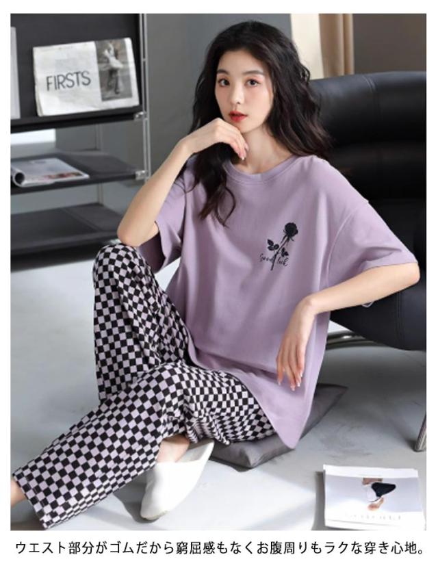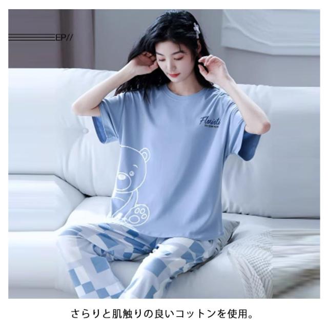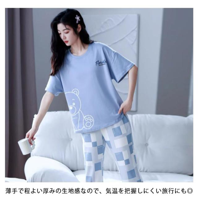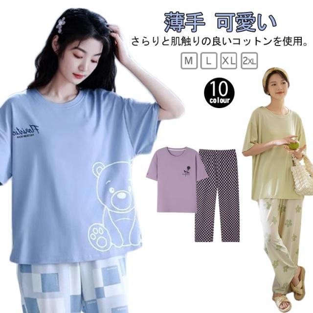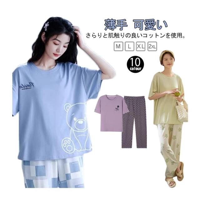ルームウェア レディース 半袖 パジャマ ロングパンツ 綿 春 上下セット 部屋着 寝巻き 可愛い 夏 ゆったり 半袖カットソー 長ズボン 薄手 トップス パンツ