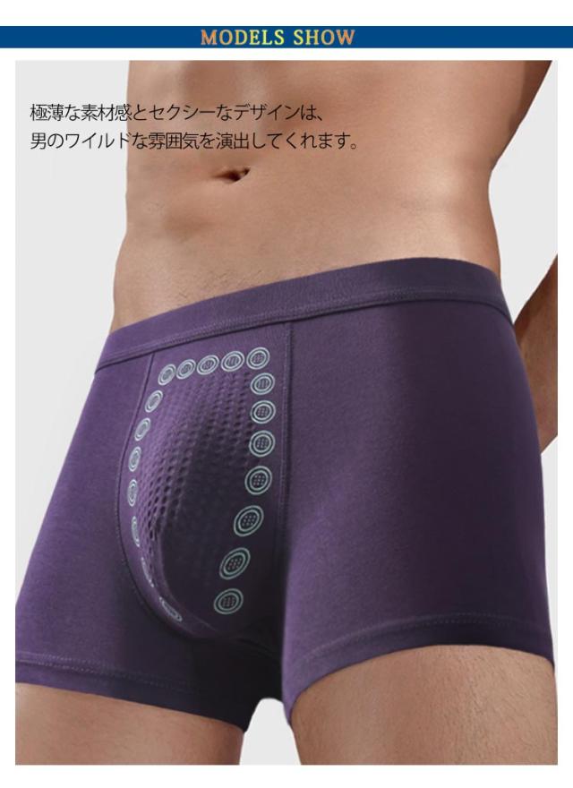 | さらっとした着用感と心地いいフィット感で、快適な履き心地のボクサーパンツ。 薄手で涼感生地を採用し、蒸れなくて、吸湿性、速乾性、通気性伸縮性などの特性もあり、真夏中でも清涼感を持ちながら、快適な夏を楽しめます。 極薄な素材感とセクシーなデザインは、男のワイルドな雰囲気を演出してくれます。 | |