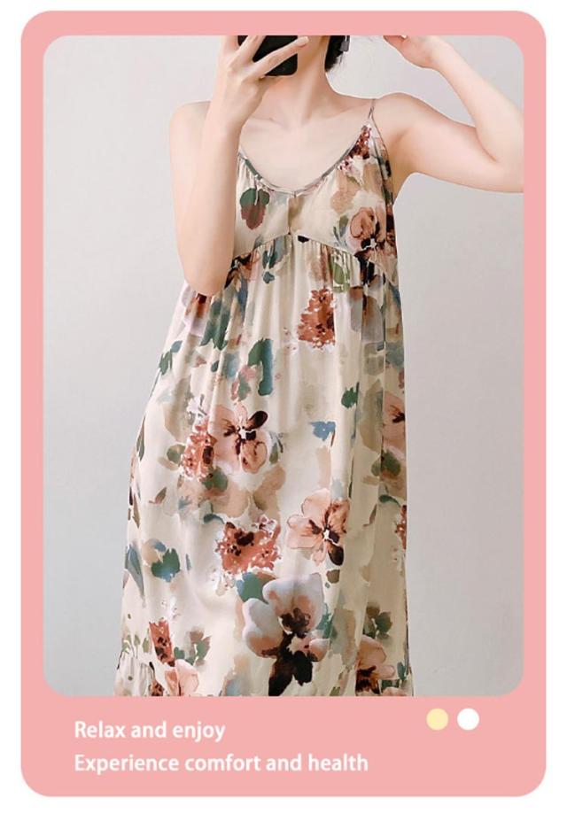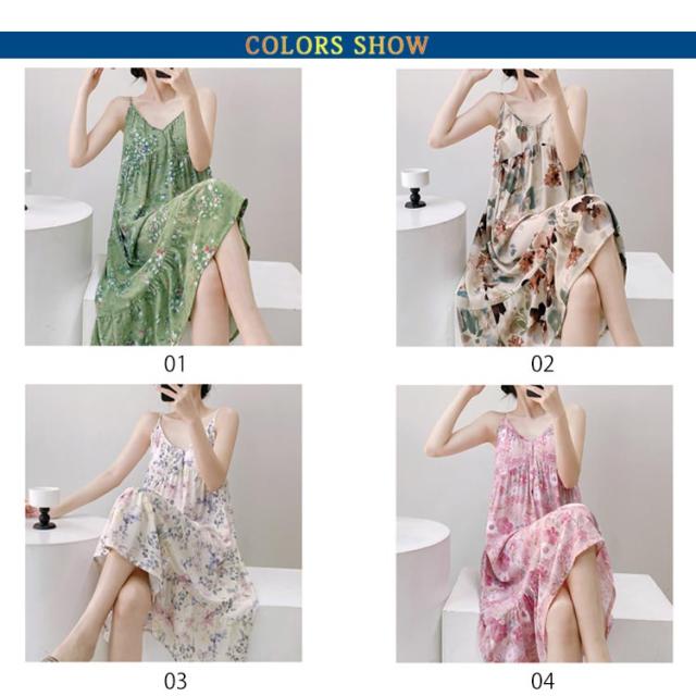 | 涼しげなノースリーブとキャミワンピのデザインが、暑い夏に最適です。 軽やかでリラックスできる部屋着として、快適なひとときを演出します。 さらっとした肌触りと環境に優しい素材を使用しています。 夏のルームウェアとして優れており、大切な方へのプレゼントに最適です。 | |