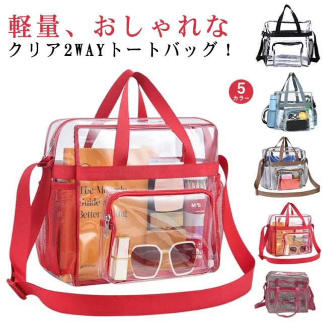 クリアバッグ 透明バッグ ショルダーバッグ 防水 ゲーム 2way ビニールバッグ 大容量 コンサート トラベル ファスナー付き 旅行 スポーツ かばん 整理 コスメ 透明バッグ ジム トートバッグ プール 痛バッグ 鞄 女性用 おしゃれ