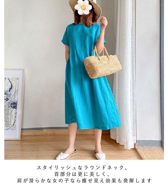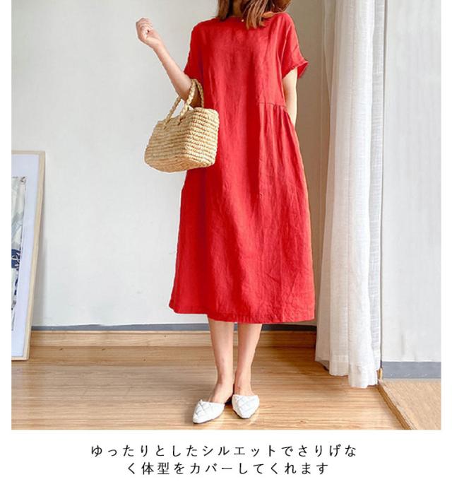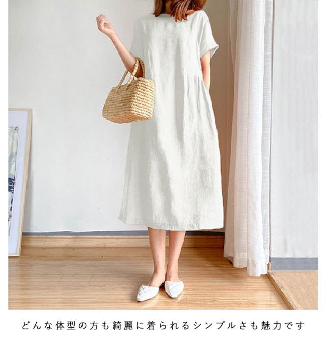 レディース 春 カジュアル リネン ワンピース ナチュラル ワンピース 大きいサイズ 夏 着痩せ きれいめ ロング丈 シンプル ゆったり 体型カバー 無地 通気性 涼しい 大人 婦人服 通勤 部屋着 洋服 可愛い おしゃれ 30代 40代 50代