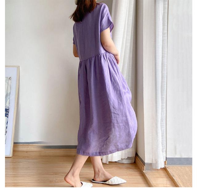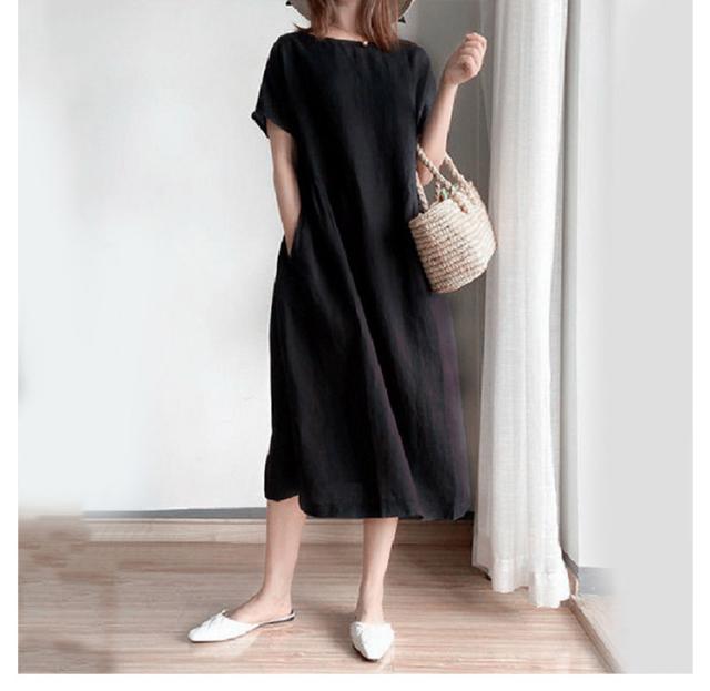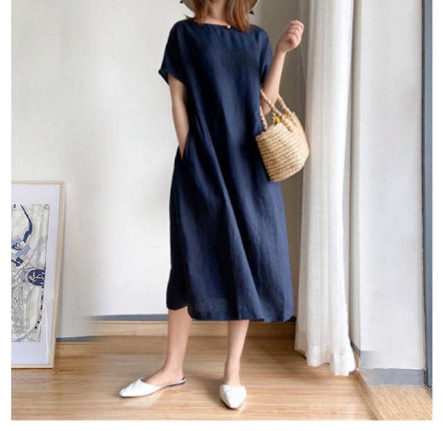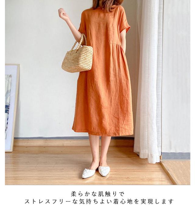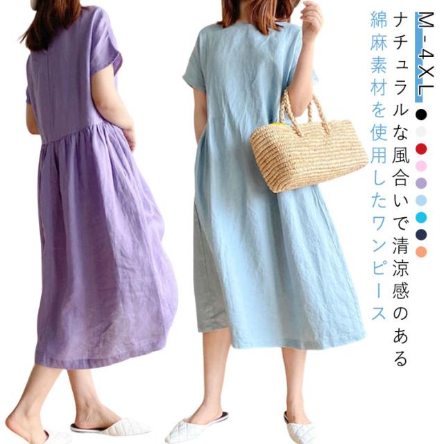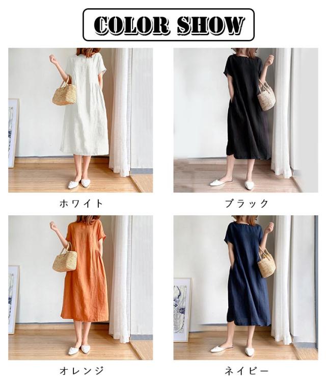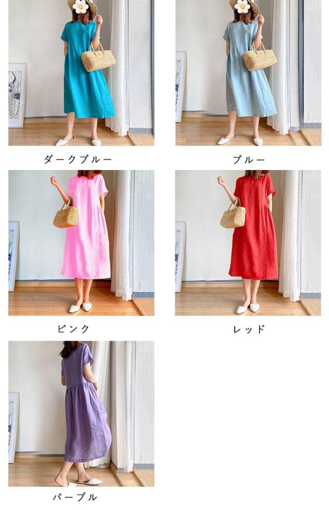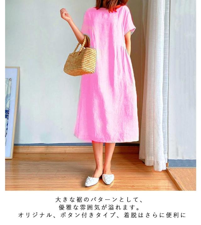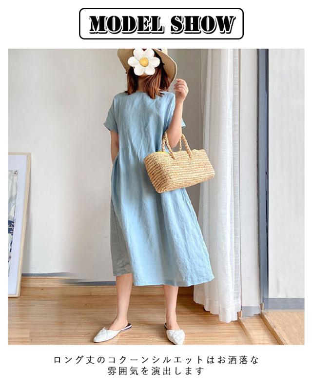 通気性 レディース 半袖 リネン 春 涼しい 夏 ナチュラル ワンピース 無地 きれいめ 体型カバー ロング丈 ワンピース 着痩せ 大きいサイズ 部屋着 婦人服 大人 ゆったり 通勤 カジュアル 洋服 可愛い おしゃれ 30代 40代 50代