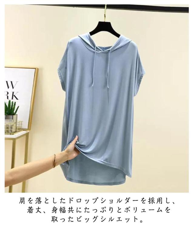 サマーパーカー ビッグパーカー 薄手パーカー サマーパーカー レディース プルオーバー 半袖パーカー ゆったり 夏用パーカー UVカット ビッグシルエット パーカー トップス フード付き オーバーサイズ ビッグサイズ 夏用パーカー ルームウェア 無地