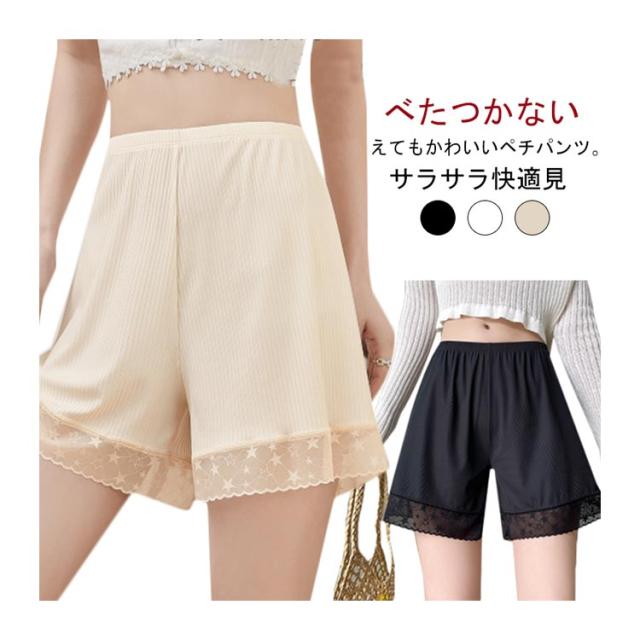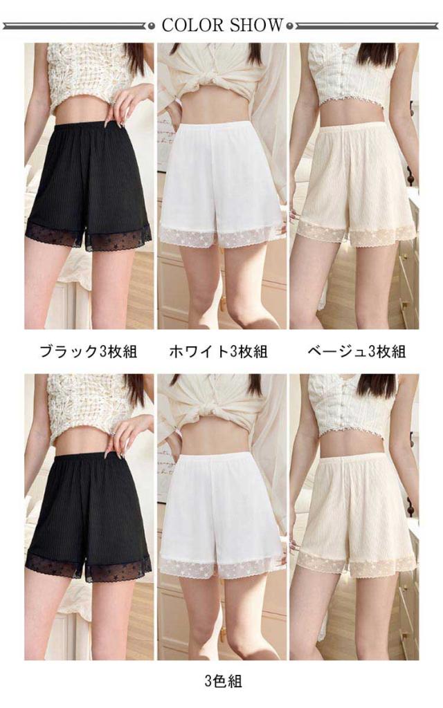 3枚セット ペチパンツ レディース 防止 ペチパンツ 下着 肌着 女性 インナーパンツ リブ 無地 裾レース かわいい ショートパンツ ストレッチ ペチコート チラ見え防止 ルームパンツ 涼しい