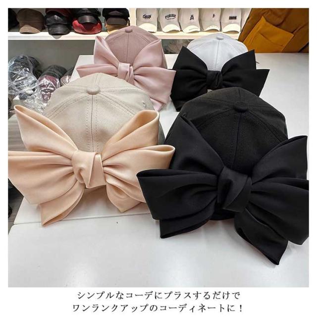 リボンキャップ リボン リボンキャップ 深め ビッグリボン 野球帽 キャップ 可愛い レディース 涼しい リボン おしゃれ 無地 ベースボールキャップ 帽子 ぼうし UV対策 日よけ さりげなく女性らしさを漂わせる ベージュ ブラック ホワイト ピンク