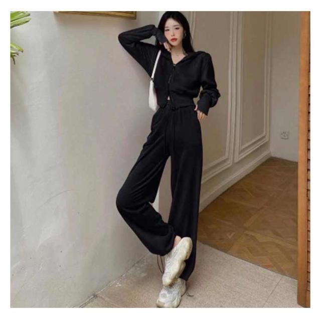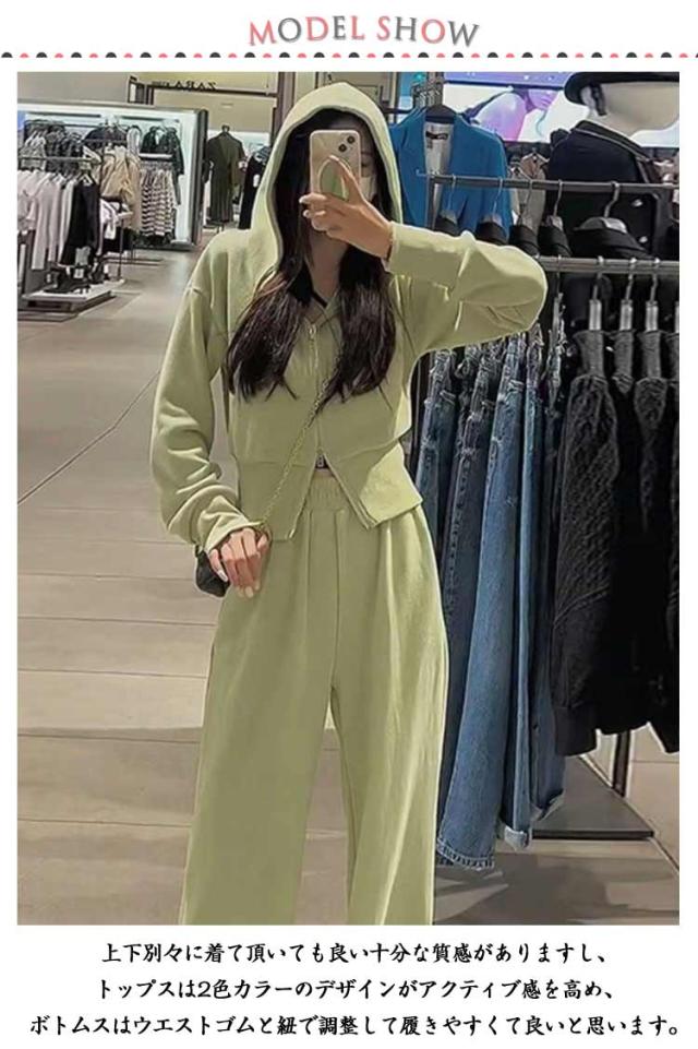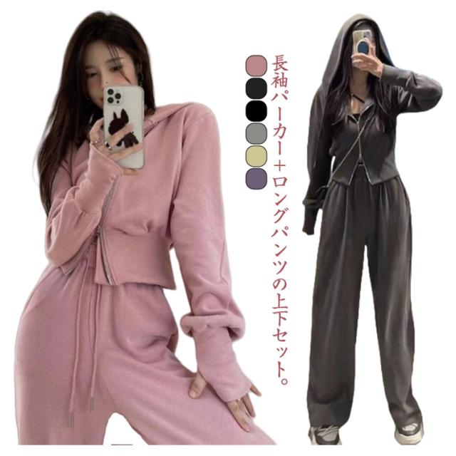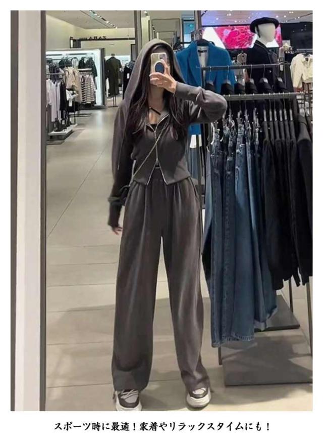 ロングパンツ レディース ゆったり ジャージ ジャージ 2点セット フード付き 上下セット お洒落 ジップパーカー 部屋着 セット カジュアル 部屋着 上下セット ルームウェア スウェット 無地 韓国風 体型カバー 大きいサイズ スポーツ 運動着