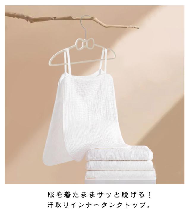 | 【2枚入り】 服を着たままサッと脱げる!汗取りインナータンクトップ。 4重ガーゼで肌触りふんわりやわらか。吸水速乾性に優れたコットン素材で、さらっと快適な肌触り♪ 汗染み予防としてはもちろん、汗をかいても丸ごと脱げるサイドオープンシルエット◎ 下着の下に着用すると、より吸汗してくれます◎ 汗で悩まされる様々なシーンに!お出かけや通勤通学で背中の汗染みが気になる、汗でムレて臭いが気になる、汗をかいた後背中が冷たい。 おうちでのリラックスタイム、運転、スポーツシーンなどにも! | |
